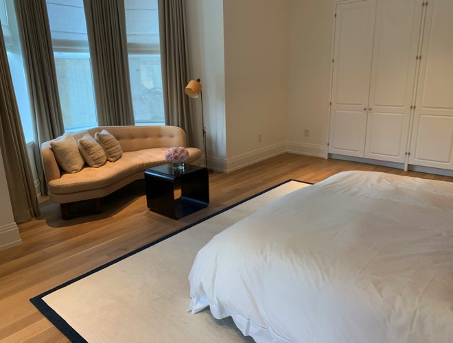 UPPER WEST SIDE BLUE BORDER BEDROOM – hand knotted 100% silk custom bedroom area rug