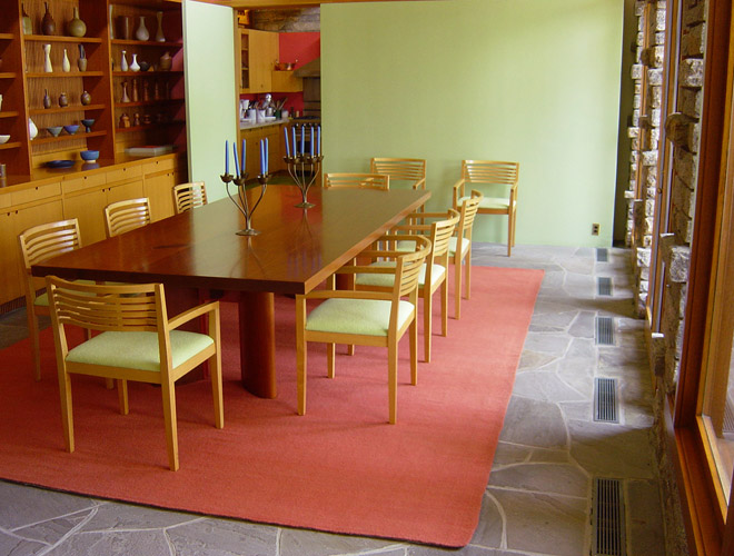 FLW home DINING ROOM – flat woven wool custom dining room area rug