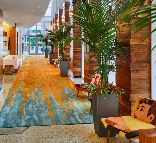 HOTEL LOBBY RUNNER – handtufted nylon custom rug. On the way to the pool…Miami Beach, Florida